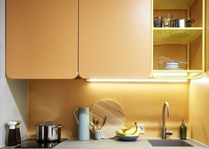 The Base Kitchen pack contains all the kitchen essentials for a comfortable stay: 2 mugs, 2 glasses, 2 small plates, 2 large plates, 2 breakfast bowls, 2 knives, 2 forks, 2 large spoons, 2 small spoons, 1 pot, 1 frying pan, cooking utensils (cooking tweezers, spoon and turner), 1 large kitchen knife, 1 paring knife, 2 plastic cutting boards.