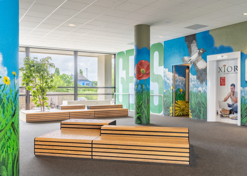 Xior Tesselschadestraat in Leeuwarden offers 82 independent living units near the city centre. This property is easily accessible by public transport and is close to Westerpark, Friesland College, and NHL Stenden Hogeschool. Enjoy modern student living in a convenient location. The studios on the ground floor, as well as the 1st, 2nd, 3rd, and 4th floors, are unfurnished. There are also 14 studios in the basement (studios 9, 9A, 9B, 9C...), each with a private storage room on the same level. The basement studios are furnished.